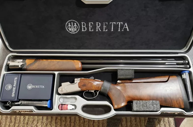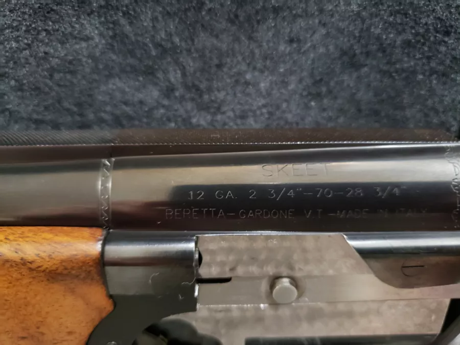 For sale is a used Beretta 692 Skeet (limited edition) over & under shotgun. It is a 12 gauge model, with 2 3/4" chamber, and 28 3/4" barrels. It is the B-Fast model with adjustable stock (& weight balance system). It has an adjustable trigger (without barrel selector), and manual safety. It comes with 9× Beretta OCHP chokes: 2× SK (ext.), 2× F (ext.) (Carlson's), 1× LM (ext.) (Briley's), 1× IC (ext.), 1× M, 2× C. The factory take-down (lockable) case, and all other original accessories (stock & barrel sleeves, stock removal key, choke key, and spare parts kit, etc.) are included as well! The front (white) bead has been upgraded to green hi-viz fiber optic (original is included).