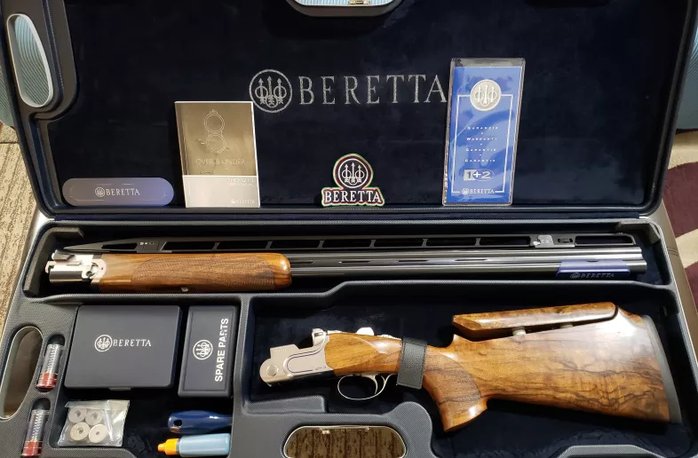 For sale is a Beretta DT11 X-Trap over / under competition shotgun. It is a 12 gauge model, with 3" chamber, and 32" barrels. It has the Steelium Pro barrels with B-Fast rib (for an adjustable POI). It also has the B-Fast stock (w/ an adjustable comb - for a perfect fit!). In addition, it has an adjustable trigger, with barrel selector, and manual safety. It comes with 5× Beretta OCHP (Optima Choke High Performance) chokes: 2× F, IM, M, IC. The factory take-down lockable hard case, and all other original accessories (owner's manual, warranty card, stock removal tool, choke key, oil bottle, snap caps, stock weights, spare parts kit (w/ firing pins, beads, comb spacers, tools), stock & barrel sleeves etc.) are included as well! It is in great condition with normal handling marks. It is the perfect shotgun for Olympic Trap, American Trap, Sporting Clays etc.
