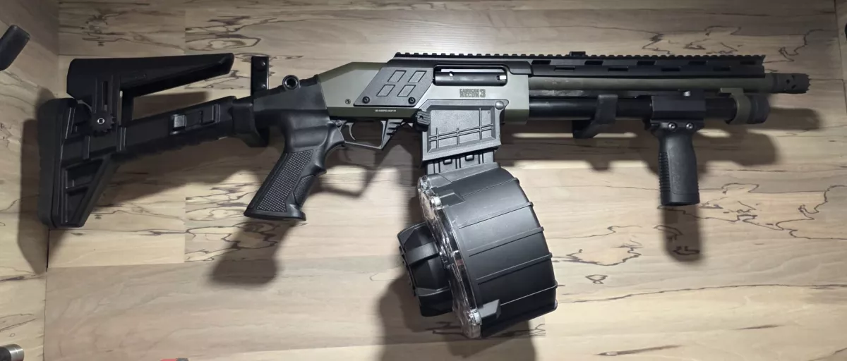 Canuck Recon 3, Pump Action Shotgun, Drum + Mag-Fed, 15.00" Barrel, 12GA Plus EXTRAS!