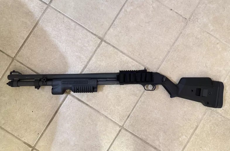 Mossberg 590A1 Magpul Edition - 12GA, 2-3/4" or 3", 20" Barrel shot one box 00 buck shot, come with streamlight pump and shell carrier. I also upgrade ambi Magpul QD sling slot and different height Magpul cheek riser. Shipping on buyer.