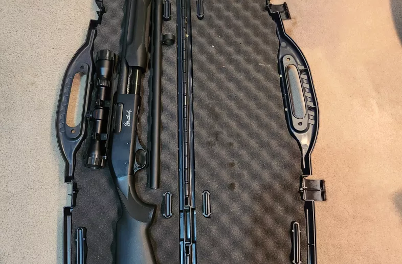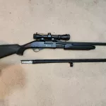 A 24" fully-rifled slug barrel with scope for deer hunting.