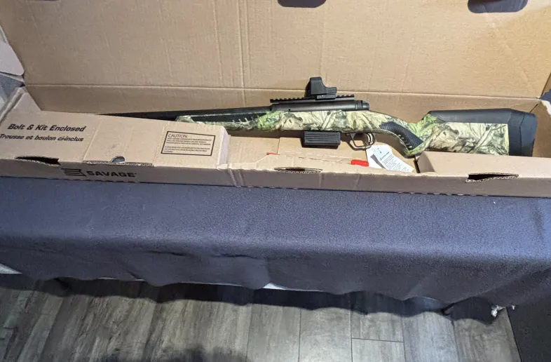 Savage 212 Turkey 12 Gauge Bolt 3” Camo (Model 57382) is brand new in box, never fired, tags still on it, with mounted Bushnell red dot.