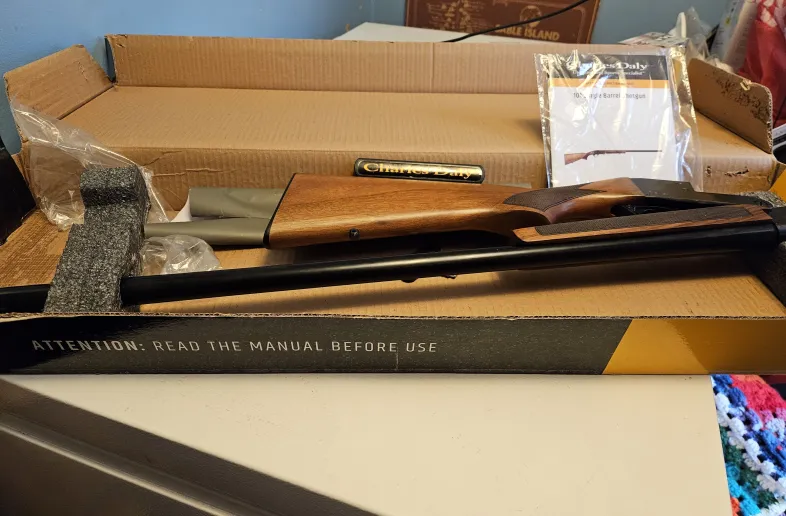 I have for sale a Charles Daly 12 gauge shotgun 2/3 in. 3 in. never fired .Full choke and modified .it folds up make a good camp gun . .save you shipping -handling -and all the paper work.plus a full box of shells.Must have p.a.l.no shipping.