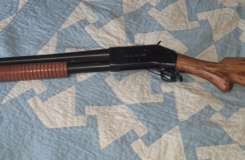 A like new 1897 Norinco Riot Gun , only test fired one box through it for function, runs perfect. 12 Guage
