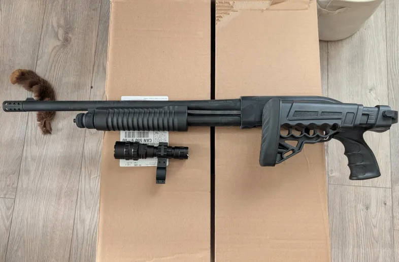 khan arms A-TAC pump action , shot 3 box trough it , comes with mountable tactical light and 3 changeable chokes, can ship. for extra $40, folding adjustable stock