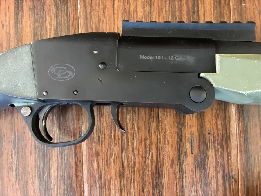 A Charles Daly 101 12 ga single shot which chambers 2 3/4” or 3” and has a 20” barrel. Comes with rail, turkey choke , modified choke ,choke key and sling. Gun locks up tight, shiny bore, and works perfectly. This gun folds up to fit in nap sack which is very handy. PAL will be validated