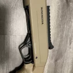 Features include: composite stock in Flat Dark Earth finish with textured/curved grip; two interchangeable comb pieces to adjust drop; two ¼” LOP spacers; Inflex-1 Technology recoil pad; aluminum alloy receiver with Picatinny rail and ghost ring sight; 18” barrel with FDE Perma-Cote finish, heat shield, and blade front sight; Door Breacher choke; hard chrome chamber and bore; matte blued sling swivel studs.