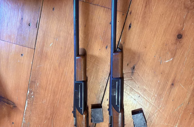 Two 12 gauge 2-3/4 inch model 200 K one with broken stock one with good stock that has been fixed both fire, bluing is starting to come off one of the barrels, the both have clips , 2 round plus one in the chamber adjustable chokes at the end of the barrels. For somebody that knows what they’re doing they could make one good gun and have parts or fix both… $400or best offer!