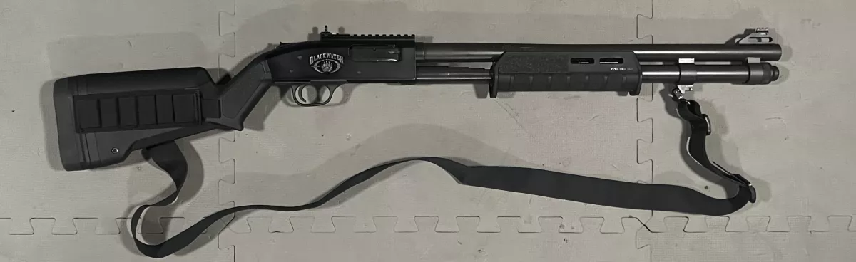 Mossberg 590A1 Blackwater edition with Magpul furniture.