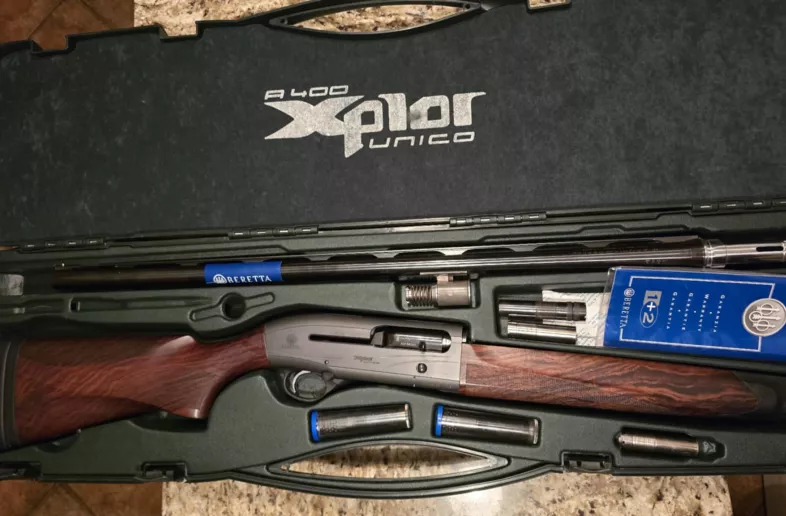 Fusil calibre 12 Beretta A400 XPlor en bois semi-automatique, modèle très rare avec kick-off à l'état neuf.