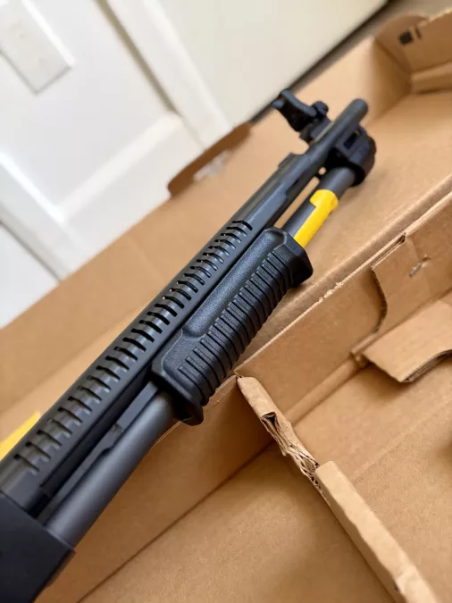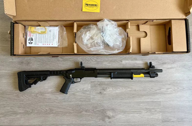 brand new unfired newest Mossberg 590 gen , the 590R with the ar safety, pistol mag, stock, heat shield, Magpul sight , upper rail, front rail, ext tube etc etc. Truly an amazing shotgun! And it’s lightweight!