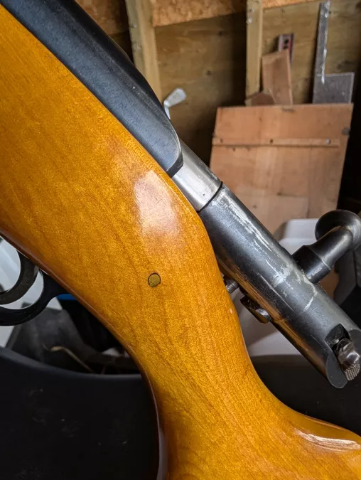 Has been refinished and done quite nicely bluing in great shape as well . Possible pin repair look at pictures . Overall condition is really good