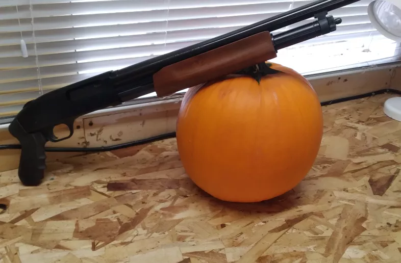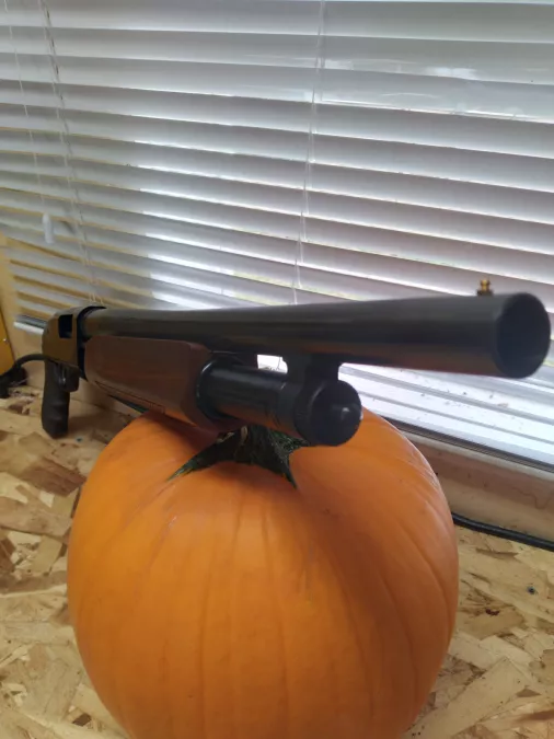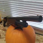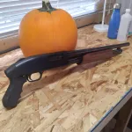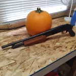 Brand new never fired mossberg 500 cruiser/security 12 gauge pump with mossberg pistol grip and 18.5" barrel. Comes with the scabbard shown. Must have a valid non restricted gun license. Asking $500.00 for a new 500 . I am located in red deer alberta. this gun was made in conneticut 100% american made .... I am willing to ship. Comes with instruction book and mossberg cable lock. I will probably blast the heck out of that pumpkin after halloween with a diff shotgun since this one is new and not been fired.