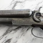 I have for sale a particularly fine condition Remington Model 1889 double barrel hammer shotgun in extremely rare 16 gauge with 2 ½" chambers. Considered one of the finest shotguns of the period, the Remington Model 1889 proved popular throughout the 1890s. Almost the entire production was 10 and 12 gauge with very few manufactured in 16 ga. This is a grade three made in 1990. This outstanding example still retains some aged case colors on the upper and lower receiver as well as on the lock plates. The high-grade Damascus patterns are vivid and run the full length of the 28” barrels with excellent sharp matting on the rib. The top of the barrels in front of the breech is marked “REMINGTON ARMS CO. ILION, NY USA” and each side lock plate are also marked “REMINGTON ARMS CO.” The stock and forend show fine checkering with the forend displaying a fancy factory inletted horn cap. The wood is solid with no cracks but has a few dings and scratches. The gun has a 13 ¾" length of pull. The butt stock is fitted with the correct factory hard rubber checkered butt plate with the attractive Remington logo embossed in the upper center. The action locks up tight but has some play in the hinge upon opening. Both hammers have no jiggle or looseness and function perfectly with their corresponding triggers. Amazingly, both bores are mirror bright with no pitting or corrosion, which is unusual for any shotgun from this period. The chokes are: Right barrel--.656” Skeet II and Left barrel--.645 Improved Modified. The gun weighs exactly seven pounds. This was one of the most well-built and expensive shotguns of the 1890s period. This Remington was considered a top choice for any wealthy sportsman with deep pockets. During this time, America was flooded with fairly inexpensive European made shotguns sold through such catalogs as Sears & Roebuck. The average farmer, rancher, hunter and pioneer could have a one of these shotguns for $30… but not a Remington, which was in a class by itself and out of reach for most Americans of the time with this grade three priced at $75. These Remington made double guns are quite scarce now and are rarely found in the state of preservation of this example. Finding one in limited production 16 gauge is nearly impossible, especially in this fine condition with mirror bright bores!