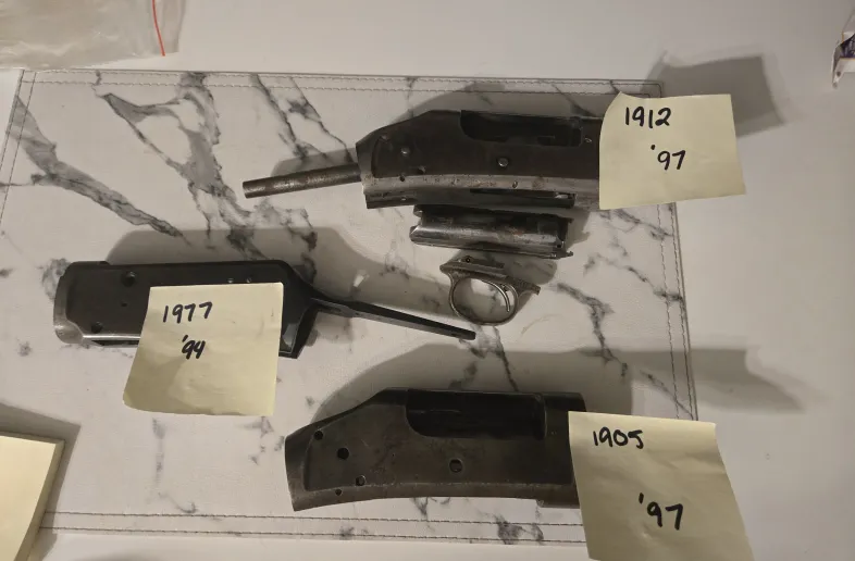 2 97 receivers (1 complete, 1 stripped) years 1912 and 1905. The 1912 is a takedown model.