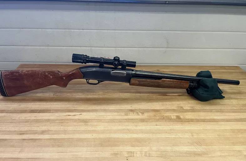 Winchester Model 2200 12 guage. Shoots 2 3/4, good used condition. Currenly setup with scope to shoot rifled slugs, smooth barrel. Use as a slug gun or remove scope and use as shotgun.