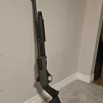 "Tactical" setup includes tactical style stock, door breacher choke and ghost ring sights. Would make for a great slug gun. Nice and light to carry.