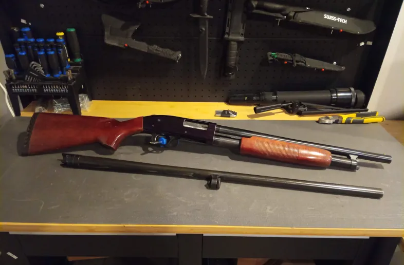 Older Mossberg 400 / 500 12 ga. Comes with an 18.5in barrel with fixed open choke and a 30in barrel fixed full choke. It is in used condition and as such has some marks here and there but passed a functions test just fine.