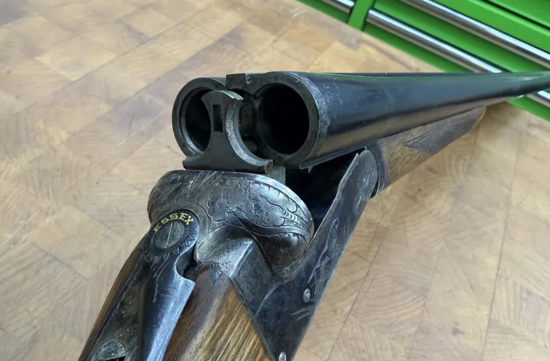I have for sale a Essex Side by Side shotgun , chambered in 12 gauge for 2 3/4 inch shells , it has 28 inch barrel one side is full choke and the other is improved modified and it has a "colored case"