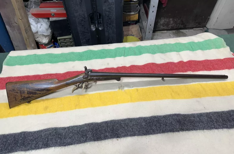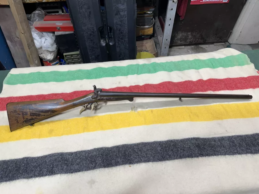 Antique status, no pal required. 16 gauge pinfire underlever side by side shotgun. Fully functioning, no cracks or repairs, lockup has play and bores have rust. Action springs are nice and tight. Neat old shotgun. Shipping is available.