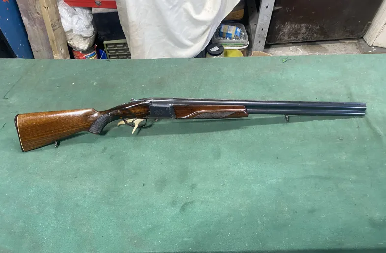 Baikal IJ27e 12 gauge over under. Sling swivels, mod/full fixed chokes, raised rib, 2 small dings in the left side of the upper barrel, stock was repaired at the wrist, bead is missing, lockup is tight, upper ejector is a bit weak but still works kost jot as strong ad the lower, shoots great, chrome bores that are excellent. Shipping available.