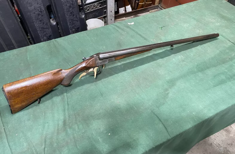 JP Sauer 12 gauge side by side. Internal hammers, auto safety, cocking indicators, 28,1/2” barrels with full fixed chokes, sling swivels, Monte Carlo stock. Right barrel has a slight ding and the but plate is chipped, side locking pin, shoots great. Shipping is available.