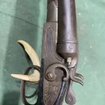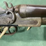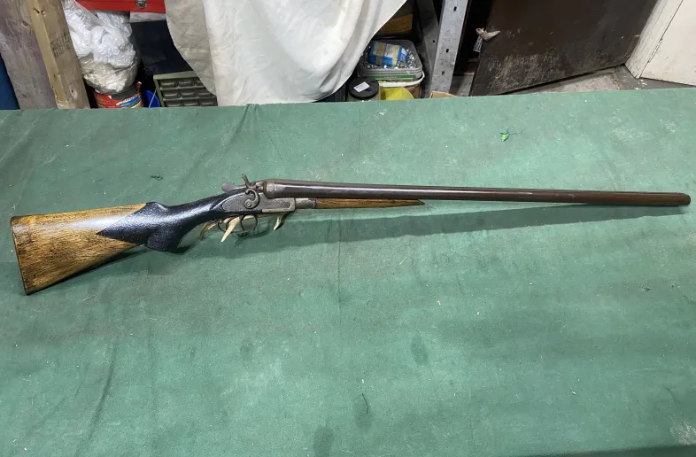 WM Moore side by side in 12 gauge with external hammers, dual triggers, amity plate, one firing pin has been replaced and w everything functions very well. Lock up is nice and tight, side pin action, full / cyl chokes, shipping an available.