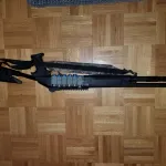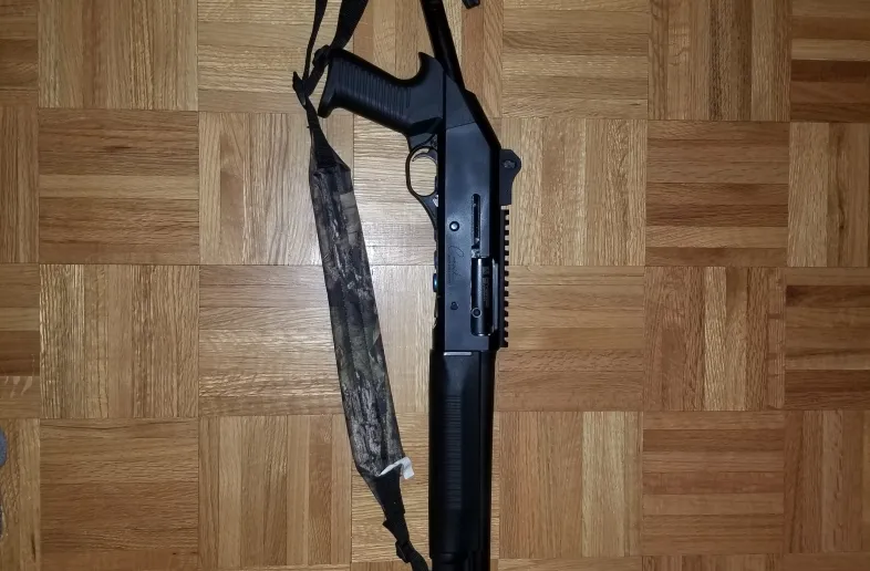 There was damage to the front sight which was repaired and has no issues hitting clays.