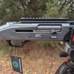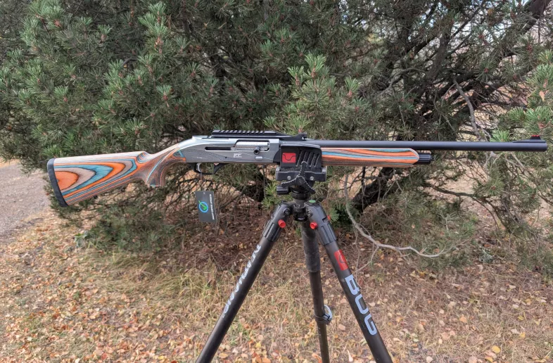 Beautiful INERTIA 12 gauge 3" Magnum semi-auto slug gun, 24" barrel, custom laminated wood stock,custom picatinny scope ready rail, front hi-vis fiber optic sight, adjustable rear sight, extensive detailing on one of a kind receiver, custom detailing on stock and forearm! Only 5 available in Canada!