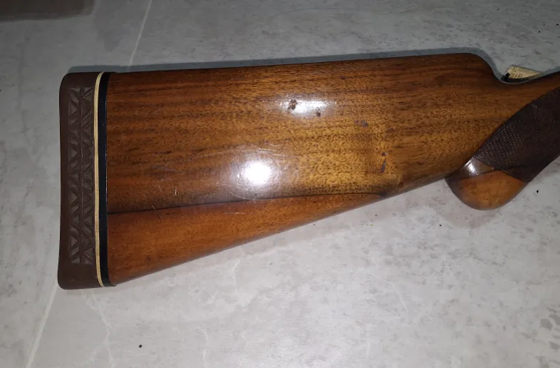 Serial number dates this gun to approximately 1956. Overall condition of the gun is good plus. No pits no rust, bluing is showing a bit of wear and stocks are without splits or cracks. The stocks show a few marks in the wood. This firearm has been used but not abused and was well kept over it's 70 years. To the best of my knowledge it has a full choke and the barrel is approximately 29"