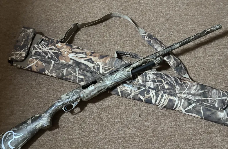 Camp pump action, can take up to a 3.5 inch. Bought the gun new two years ago at Canadian tire for 800. Great shape works perfect never let me down. The tip of the bead fell off but other then that it’s like new, only selling to buy a semi