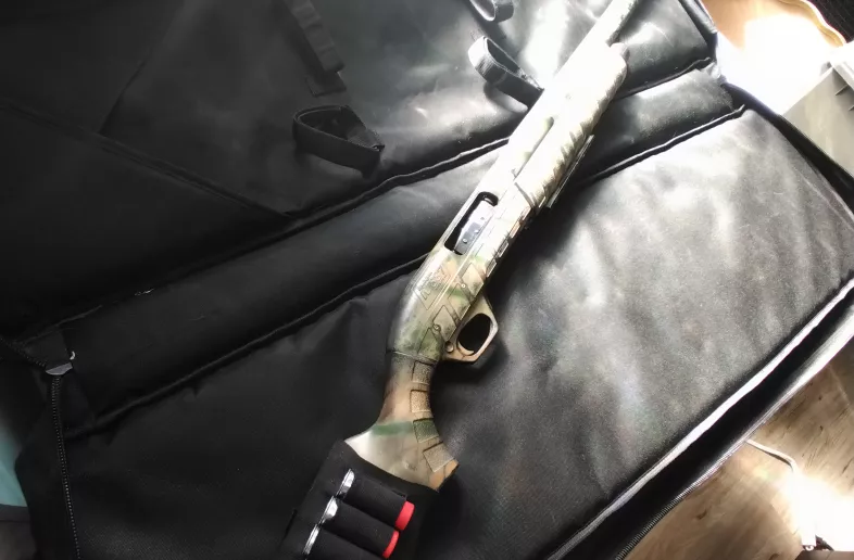 Used and abused. Been my waterfowl shotgun for a few years but have upgraded. Missing the dust/mud cover for the bolt but still functions as she should. Has a turkey choke, shotgun shell sleeve and Picatinny rail on the forestock. Can run 3.5 magnum shells and anything under.
