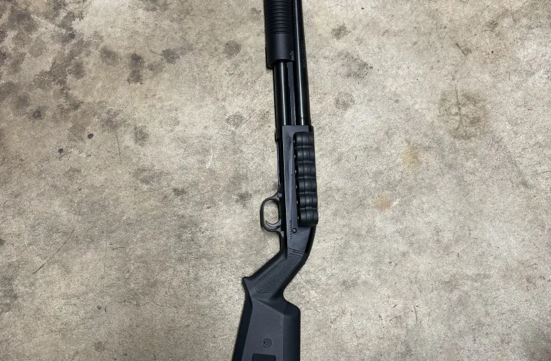 Mossberg Maverick 88 Security, 12 gauge pump action, 18.5” barrel.