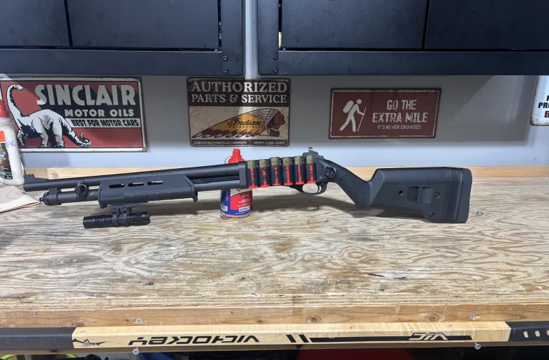 Remington 870 tactical with Magpul furniture, couple mlok QD connectors, ghost rings sited and side saddle for shotgun shells. Also has a Magpul light mount.(light not included). Shipping on buyer