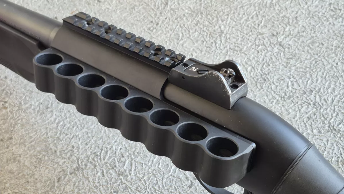- Mesa Tactical aluminum 8-shell carrier with picatinny rail