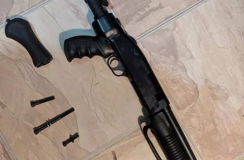 Mossberg Shockwave 20 gauge, 14.5" barrel, very good condition, folding ATI stock and original Raptor grip. $600 firm plus shipping. Not looking for trades