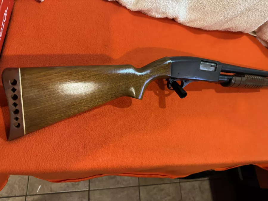 TRULINE DELUXE EATONS OF CANADA 12 GAUGE 2 3/4" PUMP SHOTGUN. 28" BARREL WITH ADJUSTABLE CHOKE. THE RIB IS STAMPED ON THE BARREL. RARE. ENGRAVED DUCK ON RECEIVER. RECOIL PAD. LOP IS 14". LIGHT BLEMISHES ON BLUING. NO TRADES. $380 PLUS SHIPPING. PAYMENT - LAYAWAY PLAN AVAILABLE. CHECK OUT MY OTHER ADS.