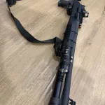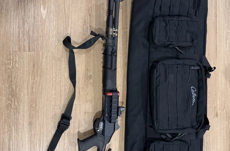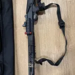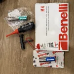Benelli m4 tactical with pic rail. Added shell holder and mounted a Streamlight and Trijicon tritium sight. Has approx 200 shells through it. Comes with Case, user manual a couple chokes and the tool for it.