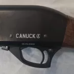 Selling used Canuck 12 Gauge pump action shotgun for 2.75 to 3 inch shells with modified chock.