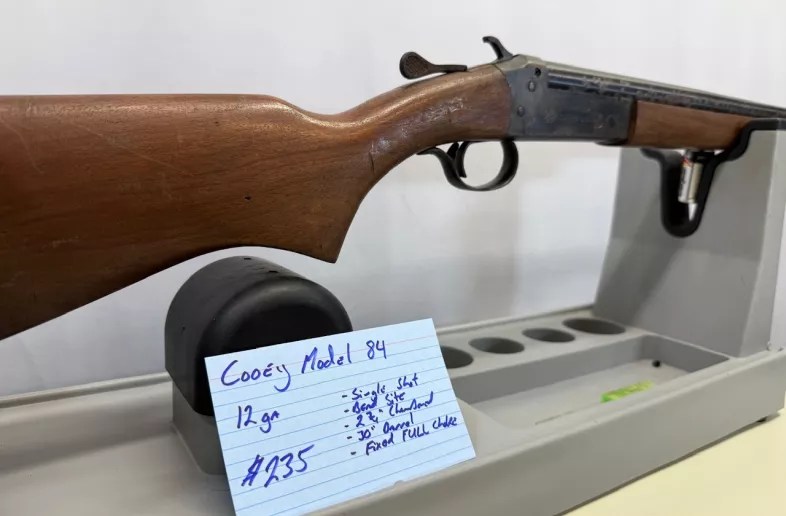 Cooey Model 84 in 12 ga single shot in fair condition bluing has lots of marks from long term gun case storage. Has a bead site, 30” barrel, fixed full choke, 2 3/4” chambered, and has a shinny good bore. Shipping and insurance by purchaser valid PAL verification required.