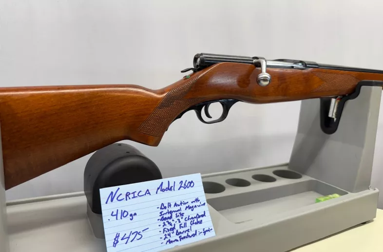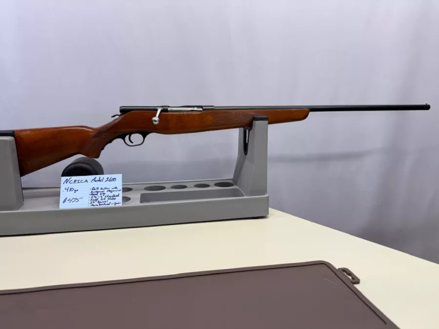 Ncrica Model 2600 in .410 ga bolt action with internal magazine in great condition. Has a bead site, 2 3/4” to 3” chambered, 24” barrel, fixed full choke, and was manufactured in Spain. Shipping and insurance by purchaser valid Pal Verification Required.