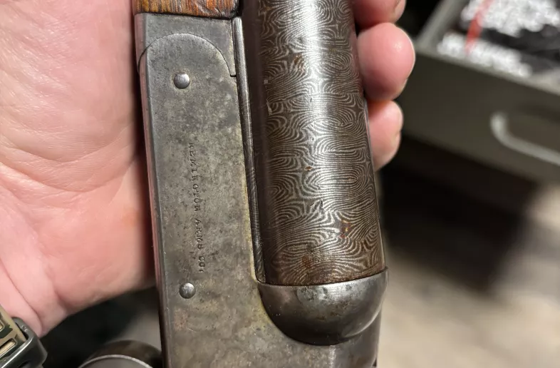 Remington Damascus double barrel 12 Gauge. This is a beautiful piece of history, do not recommend shooting this gun it has a bump on one of the barrels. The action is full functional this gun is likely 100 ish years old.