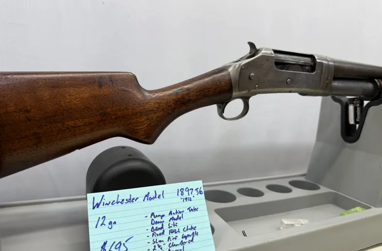 Winchester Model 1895 Take Down “1912” in 12 ga pump action in Good Condition. Has a bead site, slam fire capable, 2 3/4” chambered, 30” barrel, and a fixed full choke. Rear butt pad has been replaced, and there is a old rear stock repair that does not affect functionality. Shipping and insurance by purchaser, valid PAL verification required.