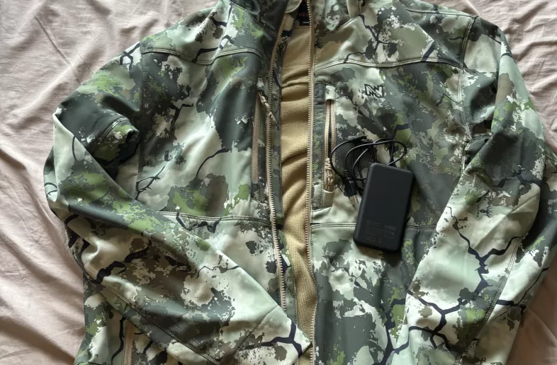 Fieldsheer heated camo hunting jacket. XXL, Includes battery and charging cord.