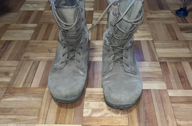 Belleville’s minimalist combat boot, the only barefoot boot of its kind. The boot was worn on a handful of hiking trips last summer as part of an experiment with zero drop/barefoot shoes more broadly. But I have since changed back to conventional footwear and no longer have need of them.