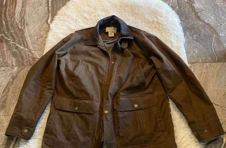 LL Bean men's double waxed cotton upland hunting coat.