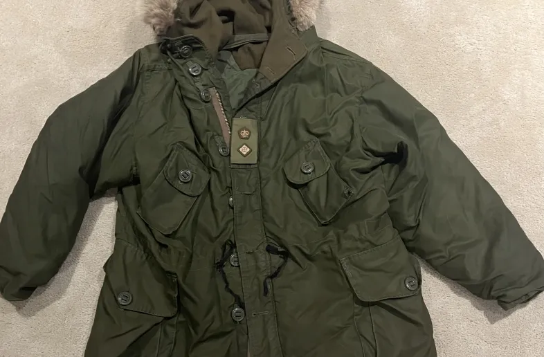 1.) British “Canadian style” (and made!) parka size Large-Regular. I am 5’10/ 44inch chest, and it fits perfect.