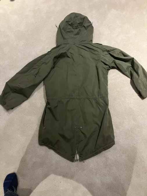 Size Small (but like all fishtail parks run big to fit over field jackets and sweater ensemble)