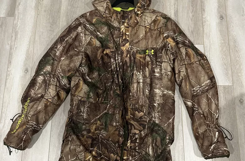 Under Armour hunting suit in great condition, no tear too big for me. Freshly washed no smoking. Pants are 36 and jacket is XXL but feel like XL. Blaze is XL. 200$ + shipping for everything.