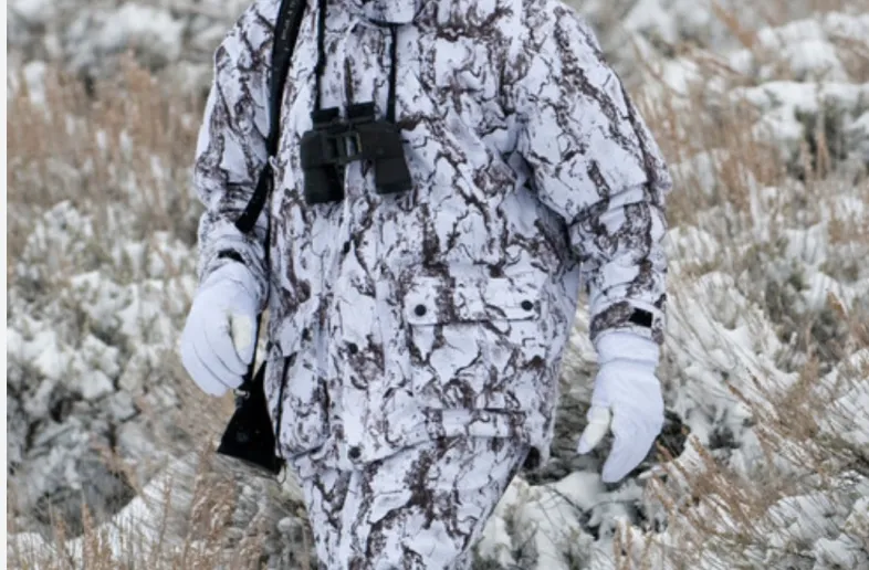 In search of snow camo clothing prefer the light weight coverup style that go over your winter clothes. More than likely need size L or XL regular .